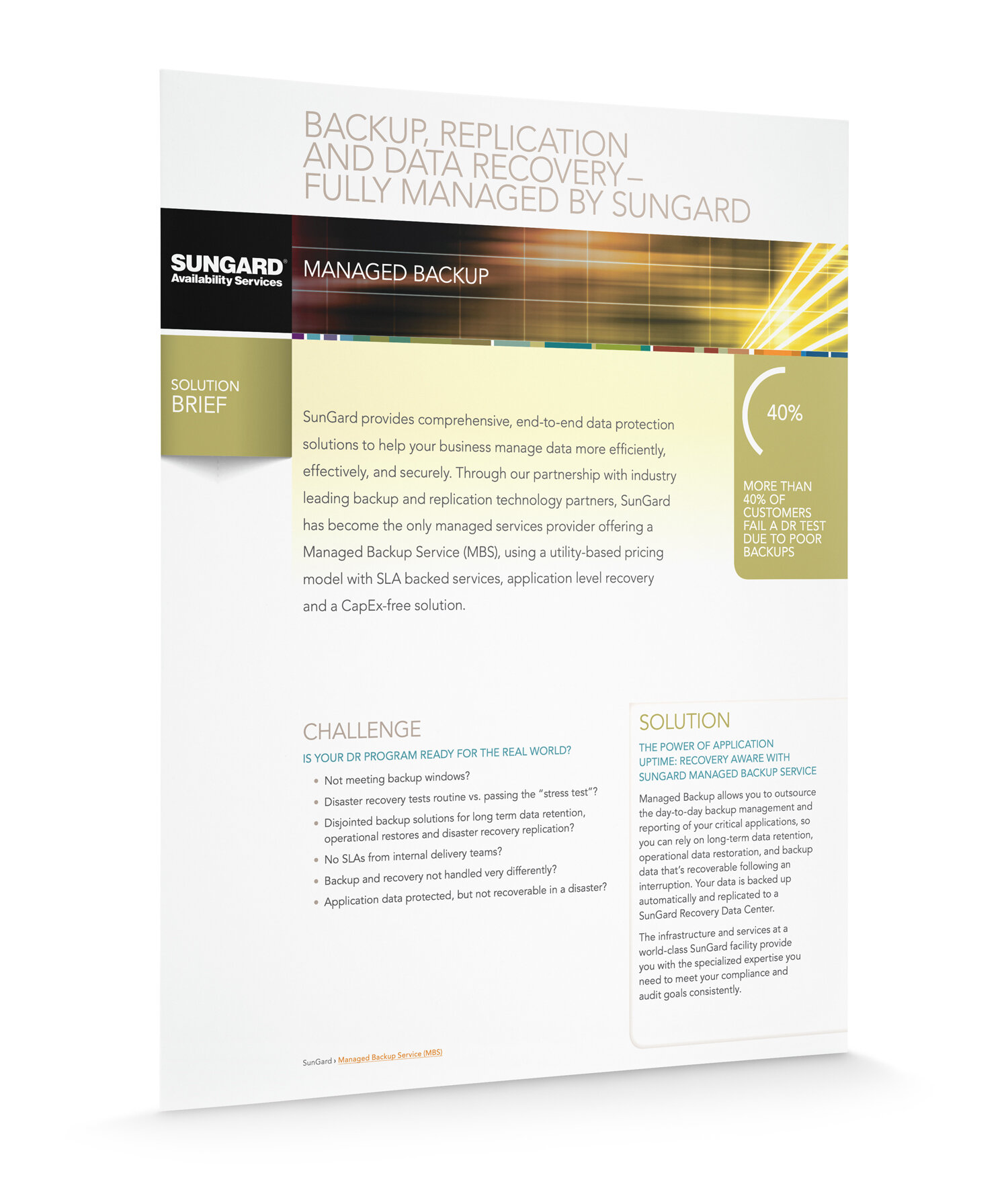 As the Director of Content Marketing, I was responsible for all client-facing collateral and event promotional materials. The Solution Brief was more than simply a sell sheet: It gave hard, quantitative benefits prospects could bring back to the internal economic buyers. This one for Managed Backup Services is a nice example.